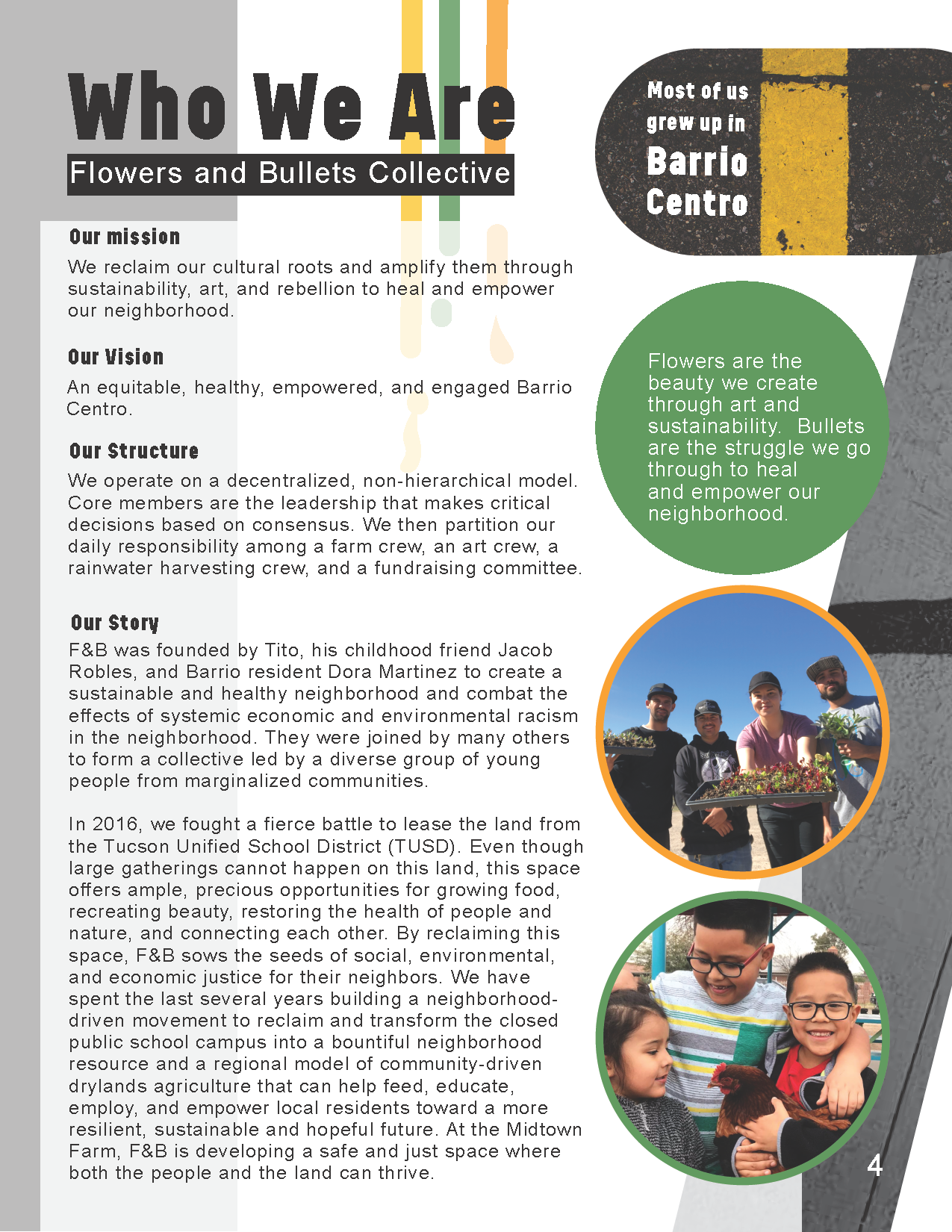 Layout and editorial design for Flowers & Bullets community cooperative'sĀ narrative.