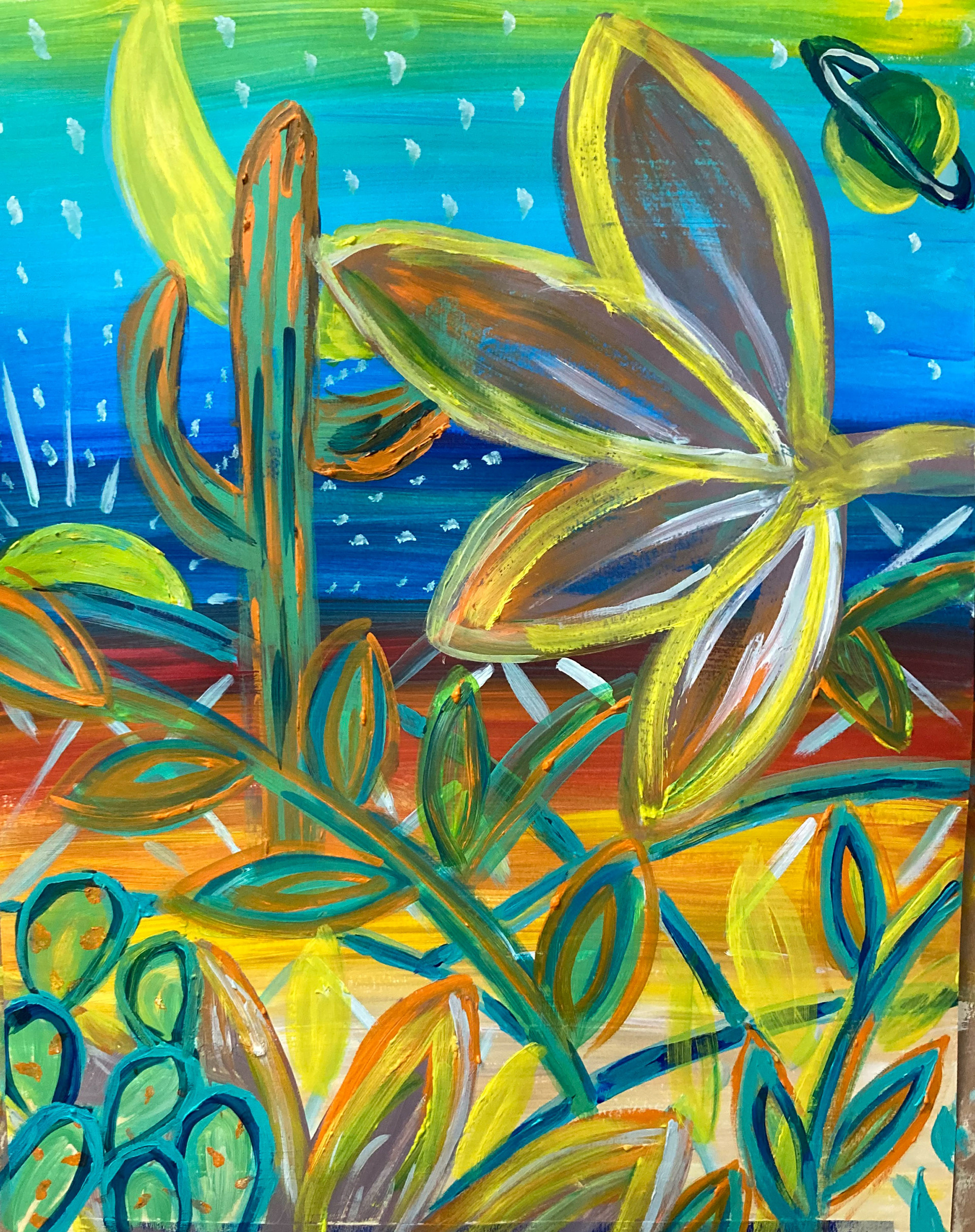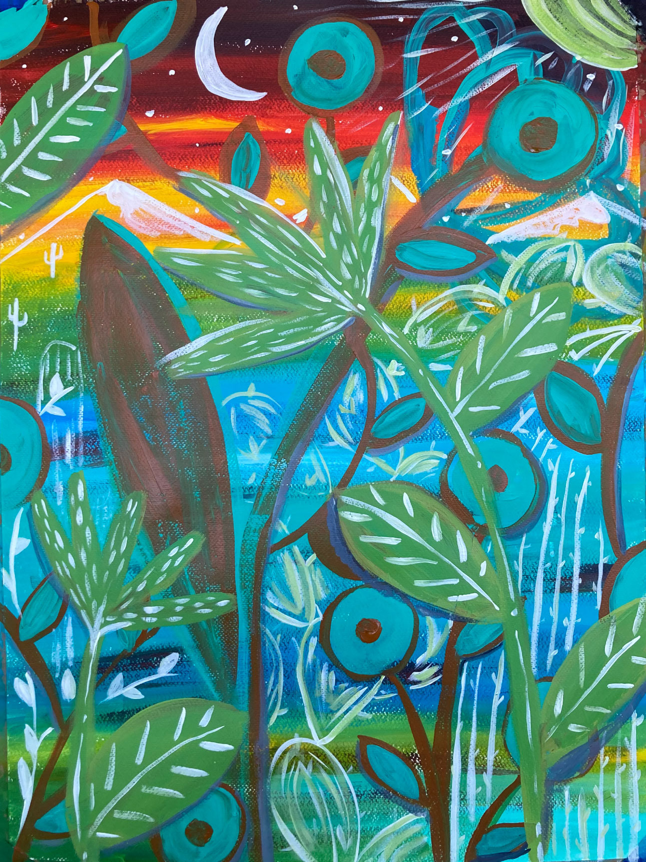I like to think each painting carries the energetic vibration of overwhelming joy and I hope that my paintings may remind you (the viewer) of your own child-like wonder, courage, inner divinity and your right to dignity. So often social justice centers around winning rights and stopping discrimination, but I think we also need to remember the freedom we already have inside of us.